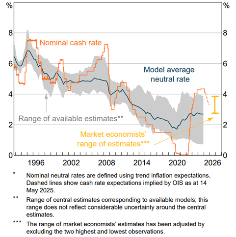 So it was of particular interest that in February 2025 the RBA published a chart of the average of its various model-based estimates of the neutral rate.