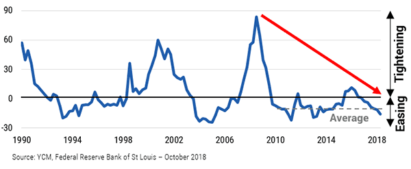 Lending standards have progressively loosened in the US for close to a decade. Put another way, those US borrowers at high risk of default have rarely had easier access to finance (refer chart 2).