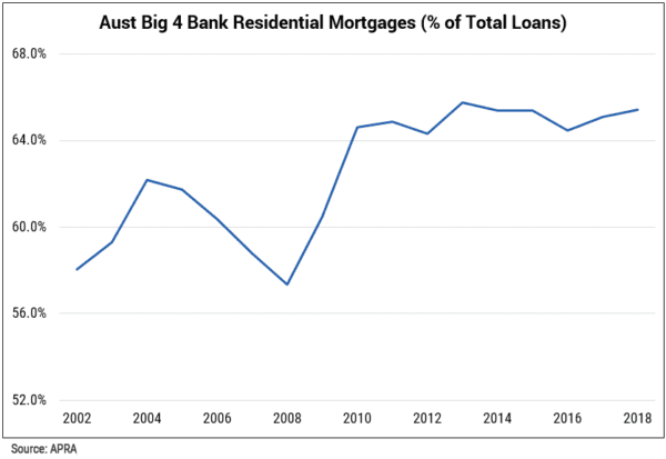 Chart 1: Major Banks – Residential Mortgages as % of Total Loans and Advances