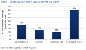 While in our view headline market earnings growth expectations remain too high, there are still sections of the Small Companies market that we expect will continue growing earnings in FY24. These include: