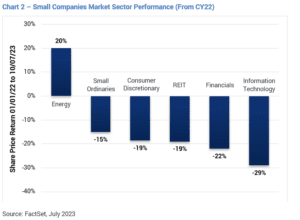 In many cases, we believe the equity market will extrapolate and overreact to what are merely short-term cyclical earnings headwinds, creating buying opportunities at deeply depressed prices. We have seen evidence of this over the last 12 months, with our Fund adding to positions in Financials and Information Technology off the back of these sectors declining (-22% and -29% respectively) since the start of CY22 (refer Chart 2).
