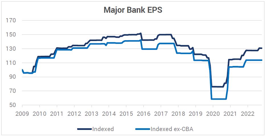 - Australia’s Big 4 banks (20% of the ASX 200) face major structural (not just cyclical) headwinds from market maturity, competition, cost growth and ROEs (in decline for a decade). The sector’s earnings peaked in the second half of FY16 (pre-Financial Services Royal Commission) (refer Chart 2) and three of the Big 4 have substantially lower share prices today than a decade ago