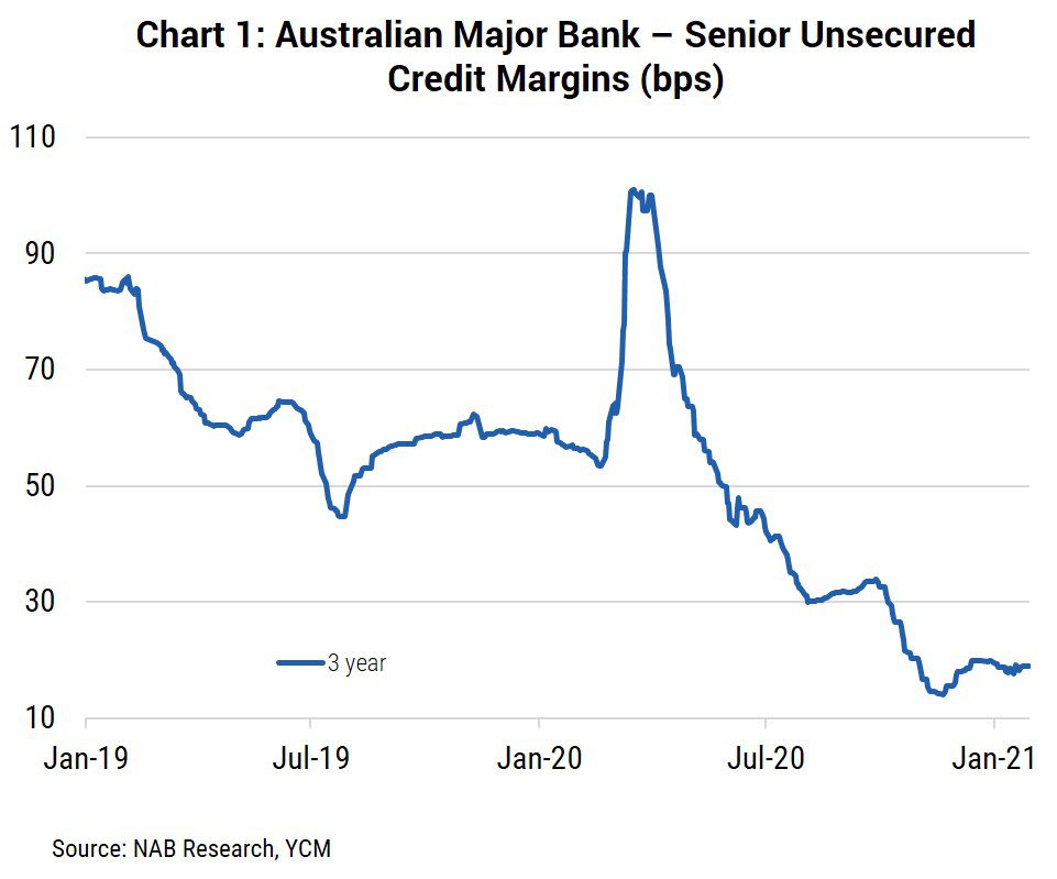 Just how long this normalisation takes will depend on the supply of new senior bank paper and performance of markets more generally. Banks will likely forward fund some of their needs, meaning that new issuance is likely to be limited in CY21. Unsurprisingly, we do not own any senior bank paper given the poor risk reward, preferring to own undistorted T2 and T1 bank capital.
