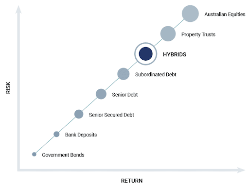 Importantly, hybrids sit higher in the capital structure than equities, meaning in the event of a default, hybrid holders will get paid before equity holders, so are not as risky. However, they sit below senior debt, which has no conversion to equity – hence higher returns.