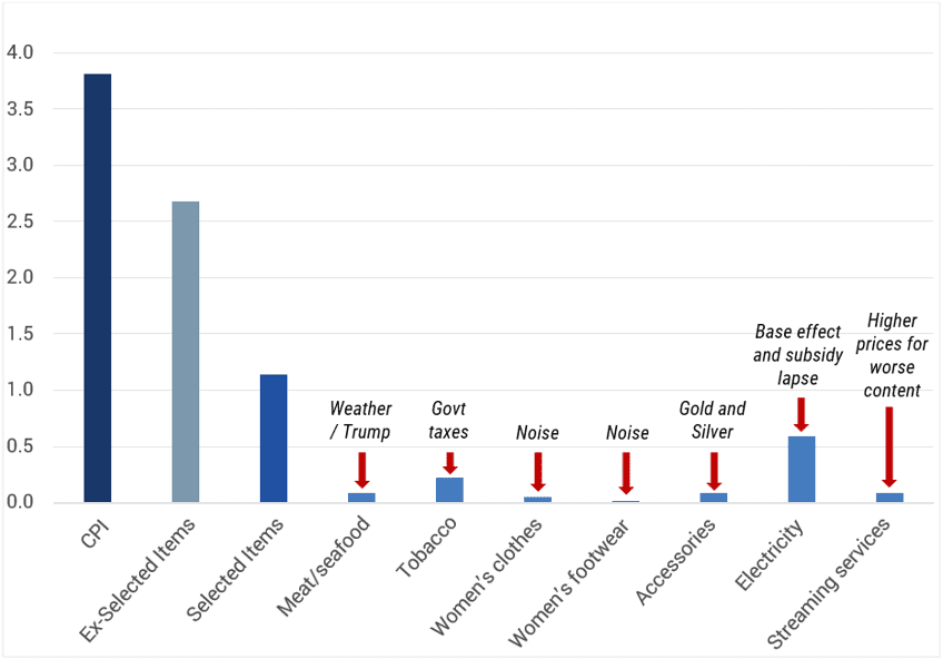 The ABS recently revealed that it is working on including illicit tobacco sales as part of consumption. The ABS might therefore have to increase the weight of tobacco in the consumer basket and use a blended price of legal and illegal sales. The net result is that this should prove a disinflationary impact once the ABS makes the adjustment, albeit such a change is not likely not until September 2026. In the interim, any sensible discussion about inflationary pressures should exclude tobacco prices from the inflation numbers.