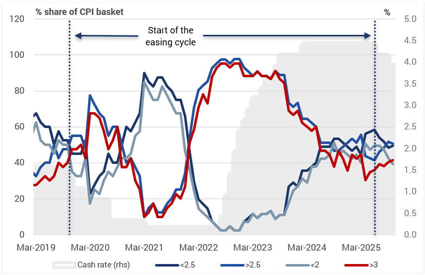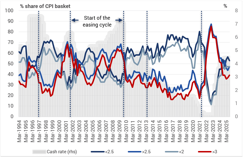 The time to be concerned is when there is a clear and discernible shift in the distribution of inflationary pressures. The reality is the distribution is not materially different from when the RBA advocated for the commencement of the current easing cycle.