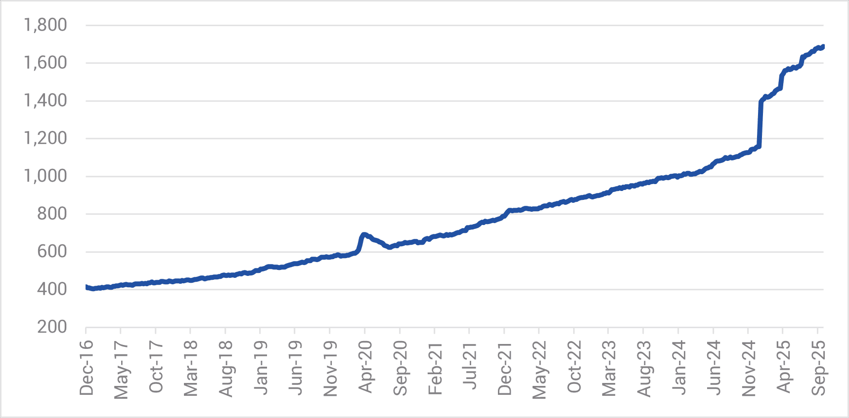 For example, US banks appear to be rapidly increasing exposure to leveraged credit through the back door with US bank loans to Non-Bank Financial Institutions (NBFIs) doubling over the last three years, surging to an estimated $US1.68 trillion as at September 2025 (refer Chart 1).