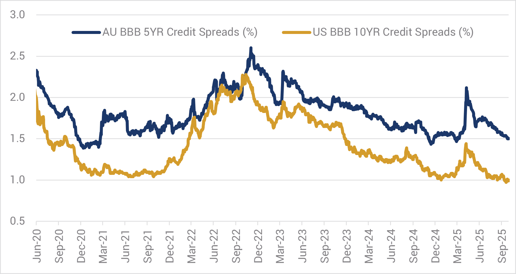 In contrast to the US, the Australian market is currently offering a superior alternative. Far from the AI-boom and liquidity influx seen in the US, Australian credit generally offers a more attractive relative value proposition for investors seeking sustainable, risk-adjusted returns in most segments of its credit market.