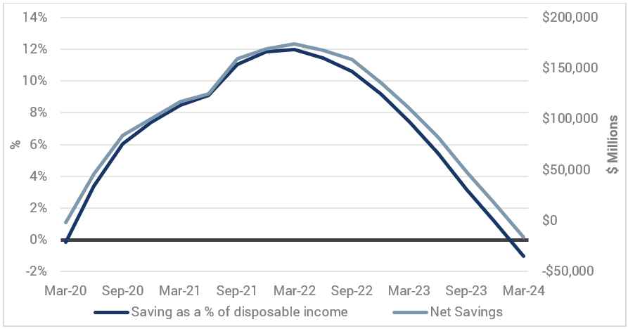 Remember when the RBA consistently referred to the buffer of “excess savings” accumulated during the post COVID period? Have you noticed that they have largely stopped talking about it in their public communications? In this latest note, Tim Toohey, Head of Macro and Strategy, highlights that calculations of excess saving buffer are illusionary. We show that there is no longer an excess of liquid savings accumulated since COVID, and explain why the RBA should take a more pre-emptive approach to monetary policy and commence easing late-2024.