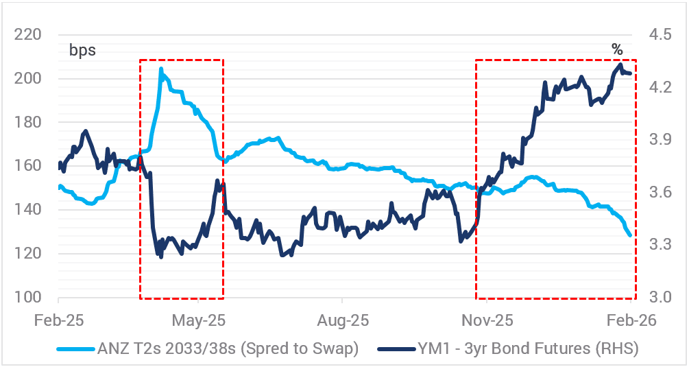 Chart 2: Australian 3-year Interest Rates and ANZ 2033/38 T2 Credit Spreads
