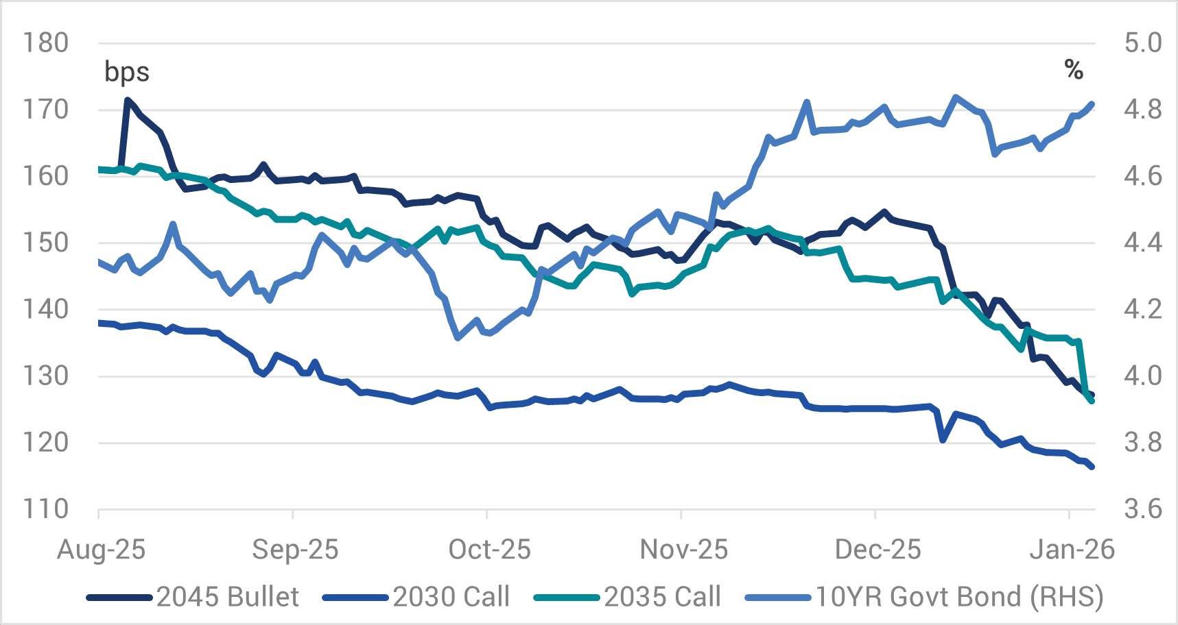 Another key theme through 2025 was the 6%+ “mania” which appears to be back with gusto. A pool of investors attracted to higher outright yields, especially longer dated major bank T2s, appear to be forgoing adequate credit spread compensation and happily accepting higher spread and interest rate duration risk to achieve their 6%+ yield objectives.